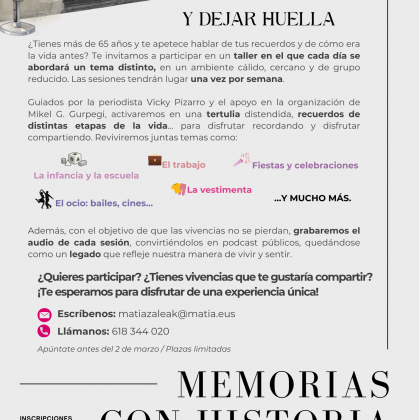 Esta iniciativa ya está avanzando, y estamos ahora mismo identificando las personas que quieran ser parte de la misma: participando en los 10 talleres, y siendo una de las voces que compartan su historia, nuestra historia.